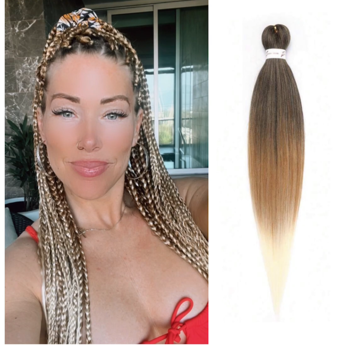 #7/14/60 OMBRÉ blonde 100 gram packs of synthetic hair braid in beautifully with its smooth pre-stretched texture.