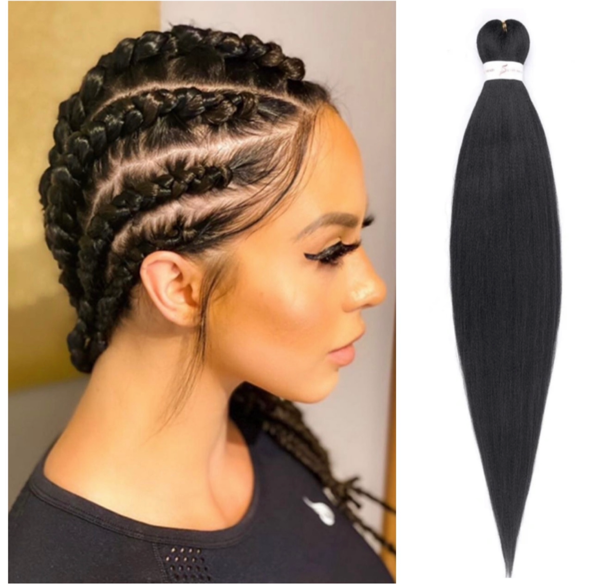 #1 Black 100 grams packs of synthetic hair braid in beautifully with its smooth pre stretched texture